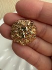 Vintage Extra Large 2-piece Metal Button - Gold Floral W/cut Steel Center