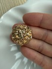 Vintage Button Brass Color Metal And Aroura Borealis Glass Stones Large