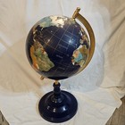Gemstone Floor Base World Globe Semiprecious Inlay Lapis Lazuli, Brass, Vintage!