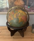Vintage Replogle 16" Diameter Globe World Classic Map 37" Tall, Wood Metal Stand