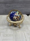 Vtg. Small Gemstone World Globe Large Semi Precious Stone Brass Stand