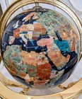 Large Blue Lapis & Semi-precious Gemstone Table Globe On Rotating Brass Stand.