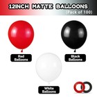 100-pack Red, Black & White 12" Latex Balloons For Party & Event Decor