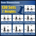 130 Sets M4 M5 Black Chicago Screws Kit Binding Rivets For Leather Belt Book Diy