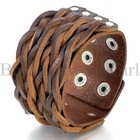 Mens Womens Black Brown Punk 39mm Wide Braided Leather Bracelet Wristband Bangle