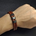 Double Layer Men Women Unisex Leather Bracelet Black/brown Adjustable Size