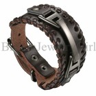Genuine Leather Bracelet Unisex Wide Wrist Belt Wrap Cuff Wristband Black Brown