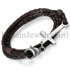 Fashion Vintage Brown Pu Leather Mens Bracelet Multilayer Stainless Steel Bangle