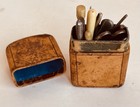 Victorian Antique Leather Etui Sewing Kit Case - Bone Tools, Scissors, Needles