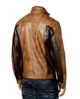 New Pattern Men's Antique Tan Brown Genuine Lambskin Leather Retro Biker Jacket