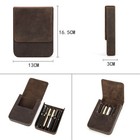 Horsehide Leather Pen Case Portable 3 Slots Pencil Box Holder W/remove Pen Tray