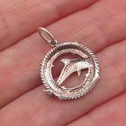 925 Sterling Silver Vintage Leeward Dolphin Oxidized Mini Charm Pendant