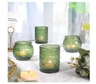 36 Pcs Green Glass Votive Candle Holders Bulk - Assorted Tea Light Holders