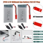 2 X 3.7v 1800mah Lipo Battery 25c Jst Plug + Usb Charger For Rc Quadcopter Drone
