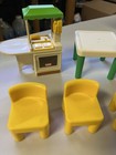 Vintage Little Tikes Dollhouse Furniture, Kitchen Green Table + 2 Yellow Chairs
