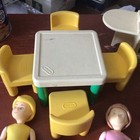 Little Tikes Vintage Dollhouse Furniture Kitchen Table 4 Chairs & Island, People