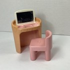 Little Tikes Miniature Dollhouse Furniture Pink Vanity Makeup Table Chair Vtg