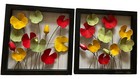 Set Of 2 Multi Colored Metal Floral Home Wall Decor With Black Frame