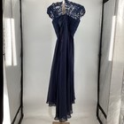 Mother Of The Bride Dress Size 4 -6 Beaded 2 Pice Rushed Floor Long Navy Chiffon