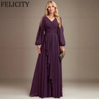 Custom Elegant Mother Of The Bride Dress Chiffon Aline Vneck Long Wedding Guest