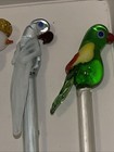 Stir Sticks Stirrers Swizzle Blown Glass Blue & Clear Tropical Bird Lot Of 9