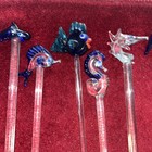 Lot Of 6 Art Glass Stirrers Swizzle Sticks Dolphin Drink Stirrers Vintage Nos