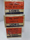 Lot 3 Lionel O Gauge Train Cars 6457 Caboose 6424 Auto Carrier 3464 Original Box