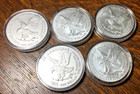 Lot Of 5 Liberty Eagle One Dollar 1 Oz Silver Coins 1986,1988, 2001, 2002(2)