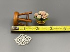 Miniature Dollhouse Vintage Wood Stool With Brass Flower Pot Lot Accessories