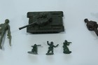 Vintage Mixed Lot Of Toy 9 Army Men Soldiers & 1 Tank Marked Blue Box