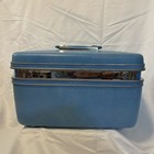Vintage 1950s Monarch Blue Train Case Hard Shell Luggage Makeup Travel Suitcase