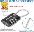 Lumintrail Tsa Travel Luggage Lock, 4 Dial Combination With 4 Ft Steel Cable