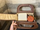 Vintage 70s Thermos Buffet Bag Picnic Lunch Set Tweed & Leather Tote Bag 3150212