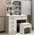 Makeup Dressing Table Set W/stool 4 Drawer & Mirror Wood Desk Modern Furniture