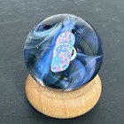 Contemporary Handmade Art Glass Marble 1.56" Swirl Mib, Dichroic Sparkle, Blue
