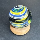 Contemporary Handmade Art Glass Marble 1.54" Blue Yellow Swirl- Shaping Discount