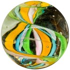 Contemporary Handmade Art Glass Marble 1.09" Colorful Wigwag Swirl, Clear Core