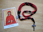St Mary Magdalene + Jesus Paracord Rosary Red Beads Medal Crucifix + Prayer Card