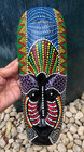 Hand Carved Painted Wooden Tribal Tiki Mask 12x6” Wall Hanging Bar Decor