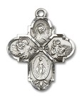 Sterling Silver 4-way Catholic Holy Medal Pendant Necklace 24" Chain Giftbox