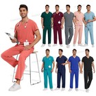 2025 2pcs/set Hospital Nursing Medical Scrub Uniforms Set Tops Pants Multi-color