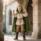Kids Velvet Hooded Cloak Cape Renaissance Costume For Boys Halloween Medieval