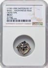 1150-1200 Basel Cross Type Anonymous 1p Pfennig Medieval Silver Coin Ngc Ms61