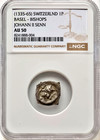 1335-1365 Swiss Basel Bishops Johann Ii Senn Medieval Silver Coin Ngc Au50
