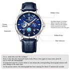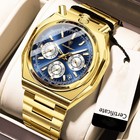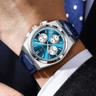 Men's Stainless Steel Waterproof Chronograph Quartz Watch, Blue Face, Auto Date
