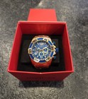 Invicta Pro Diver Chronograph 18k Gold Case Blue Dial Bezel Strap Men Bold Watch