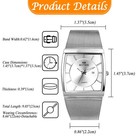 Mens Square Date Business Watch Stainless Steel Quartz Waterproof Wristwatch
