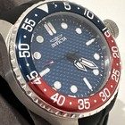 New Invicta Men Pro Diver Chronograph Black Dial Silver Red Strap Ss Watch