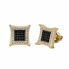 Mens 14k Gold Plated 925 Silver Iced Kite Black Cz Square Earrings Studs