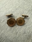 Vtg Gold Tone Wood Style Men Round Cuff Links